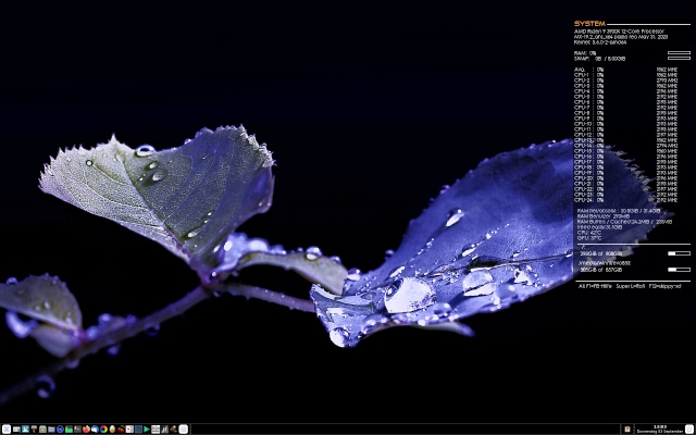 Das sieht ganz schön leer aus, wobei sich Conky, Docks und Icons über die entsprechenden Menü Einträge ja jederzeit wieder aktivieren lassen. Nebeneffekt ist das der initiale Rambedarf, trotz eines alternativen Docks nur um 300mb liegt.