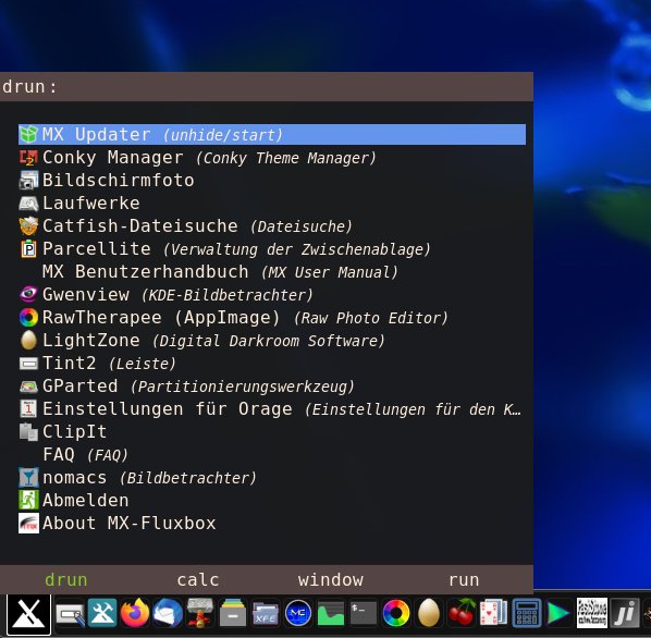 MX-Linux mit Fluxbox (Release: Fluxbox 2.2)