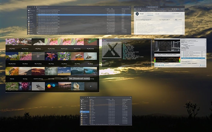 Wobei man natürlich auch jedes andere, beliebige, Bildverzeichniss einbinden kann. Wenn man anstelle der Desktop Datei einen Button von Tint2 belegt, kann man auch 5 Feh Instanzen mit unterschiedlichen Parametern, wie z.B. unterschiedliche Verzeichnisse, arbeiten.