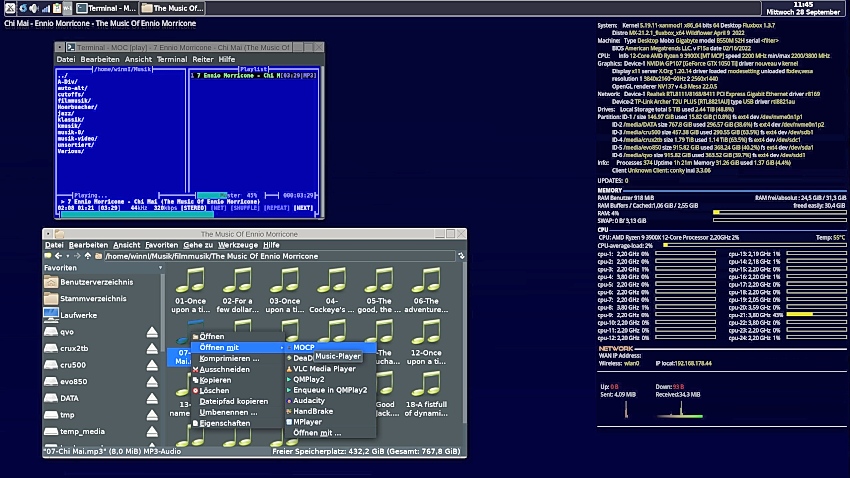 Moc ist dann auch über das Fluxbox Rootmenu, Rofi und xfce4-appfinder aufzurufen.